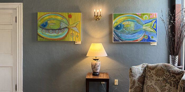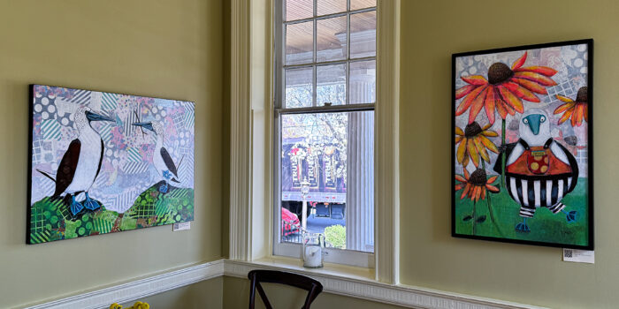 Guests can enjoy artwork displayed throughout the inn’s public spaces, from the welcoming entryways to the dining room and relaxing parlors. A curated mix of LibertyTown artists fills the walls, creating an inviting atmosphere that celebrates creativity, color, and the spirit of spring.